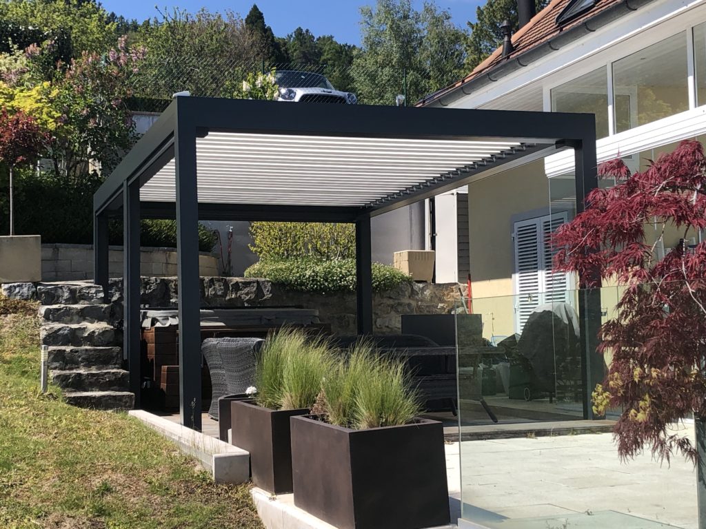 Optimisée au niveau du poids, la pergola VISION 180 à le meilleur rapport qualité/prix en Suisse Romande. Elle peut être motorisée (Timotion) ou à fonctionnement manuel.